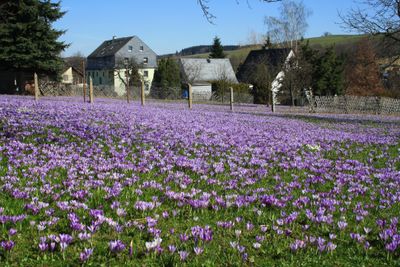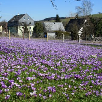 The Drebach Crocus Meadows extend over 7 hectares with more than 40 natural monuments featuring wild spring crocuses that bloom from March to April.