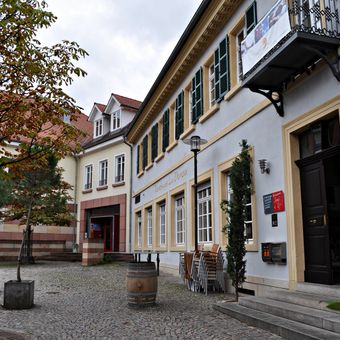 The Dürkheimer Haus features two wings and stands outside the former fortified city center, near the historic Hardenburger Gate location.