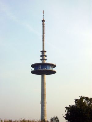 The Schiffdorf telecommunications tower is a concrete broadcasting facility near Cuxhaven that transmits television and radio signals for the region. The structure consists of a tall concrete column with antenna equipment mounted at its top to distribute signals across northern Germany.