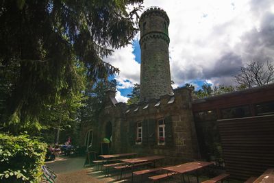 The tower represents a meeting point for hikers exploring the Deister region, with a restaurant established in 1913 serving local specialties and Ruppbräu beer.
