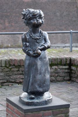 Ehra oder Kind mit Ball, Bronze statue at Old Harbor, Düsseldorf, Germany.