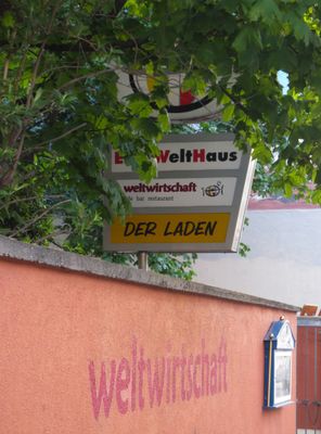 The Eine Welt Haus functions as a gathering space with multiple rooms dedicated to international cultural exchanges and community meetings throughout the week.