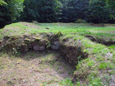 Eiringsburg is a circular rampart site and archaeological location near Bad Kissingen with remains of medieval fortifications. The structure rises from the landscape and still shows the basic form of the original defensive installation.