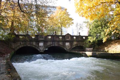 Eisbachbrücke, Arch bridge in Altstadt-Lehel, Germany.