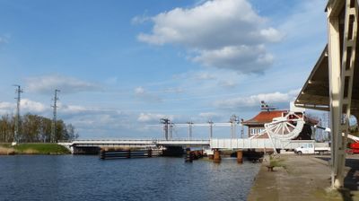 The first bridge was built in 1863 by the Berlin-Stettiner Railway Company as a manually operated rotating structure. The current facility with modern lifting cylinders was constructed between 2012 and 2013 as a complete replacement.