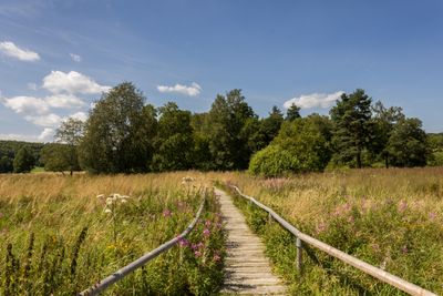 The wetland area contains walking trails through diverse landscapes including peat bogs, forests, and open meadows with native plant species.