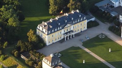 Graf Friedrich III zu Wied initiated the construction of this baroque castle near the Rhine River in 1645, before the establishment of Neuwied city.