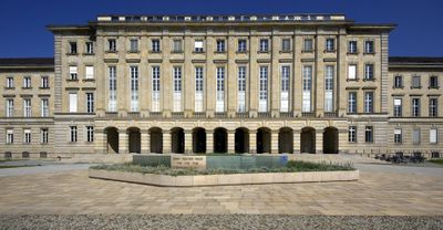 Construction began in 1940 as part of Albert Speer's Germania project, and the building stands as the only completed structure along Berlin's planned East-West axis.