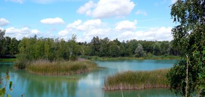 The former clay pits now serve as habitats for yellow-bellied toads, diverse dragonfly species, kingfishers, and Eurasian reed warblers.