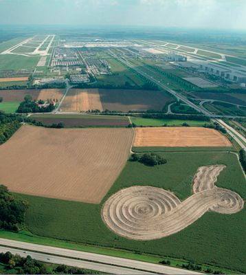 Erdzeichen, Earth art sculpture at Munich Airport, Germany