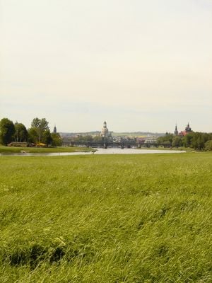 Annual film festivals take place on the meadows, where sheep graze against the backdrop of Dresden's old town silhouette.