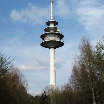 Located on Betzenberg hill at 497 meters above sea level, the tower features four platforms at different heights and operates various mobile communication services.