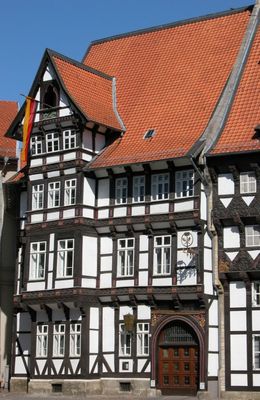 The Von Veltheimsches Haus exhibits three residential floors with a multi-story bay window offering views across the central square of Brunswick.