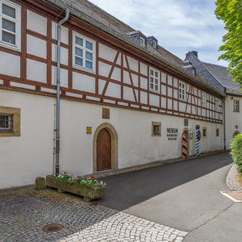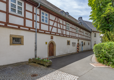The Museum Bayerisches Vogtland occupies a former hospital structure from the 13th century, displaying regional artifacts, minerals, and traditional craft collections.