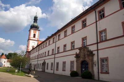 The monastic complex includes a church with Baroque modifications and additional buildings that form an expansive religious compound in Upper Palatinate.