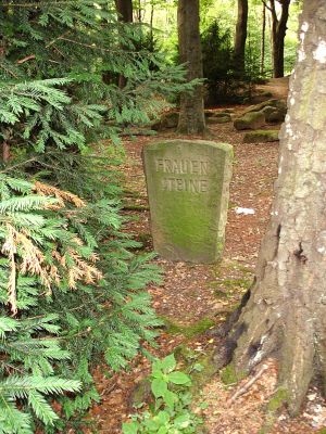 The Frauensteine consists of ten quartzite stones measuring over one meter in length, forming a natural cluster in the forest terrain.