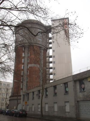 Wasserturm Hochfeld, Industrial water tower in Hochfeld district, Duisburg, Germany.