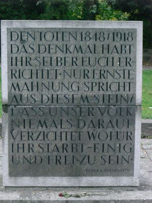 The Cemetery of the March Fallen contains 255 graves of revolutionaries from 1848 and 33 graves from the 1918 German Revolution within stone walls.