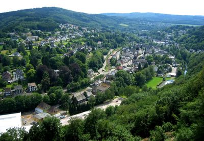 Hohe Warte is a forested mountain in Engelskirchen that rises to 360 meters and features several marked hiking trails. An observation tower at the summit provides visitors with views across the surrounding landscape.