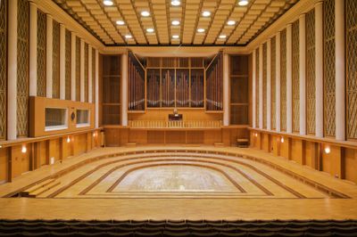 The building combines architectural elements of socialist modernism with advanced acoustic engineering, creating spaces that shape the sound production quality.