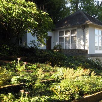 Built in 1955 at Konrad Adenauer's request, the tea house replaced a garden hall designed by Johann Georg Eberlein and served as a meeting space for chancellors.