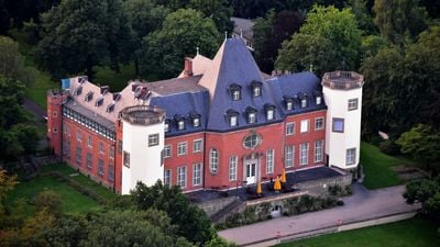 Schloss Birlinghoven sits on a hilltop at 146.7 meters elevation within the Birlinghoven Forest, one kilometer west of Sankt Augustin's district of Birlinghoven.