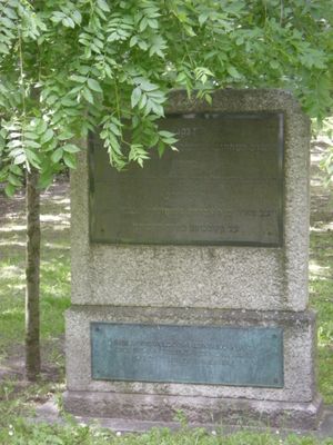 The memorial stone, installed in 1988, incorporates text from a 1935 plaque originally placed at a Jewish retirement home by Rabbi Martin Salomonski.