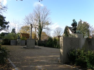 Gedenkstätte Zeche Radbod is a memorial at the site of a former mine in Hamm that honors victims of a past disaster. Two facing commemorative plaques display names, while pedestals between them feature sculptures of miners and mourning figures.