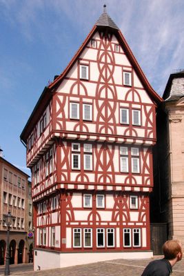 The building represents the transitional style of Central German timber framing, where each beam layer serves as an integral part of the structure.