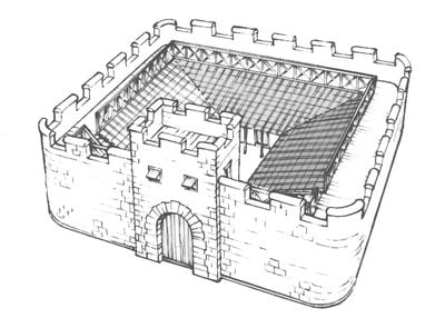 The stone fortification measures 20 by 20 meters and includes a 2.3-meter-wide gate with rectangular interior door posts and a threshold.