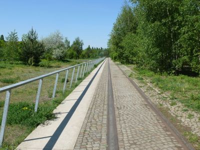The park preserves elements of Berlin's division, incorporating railway tracks and border wall fragments into its modern landscape design.