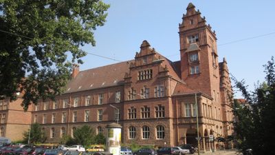 The institution combines its status as an active educational facility with protected architectural elements that document early 1900s German school construction.