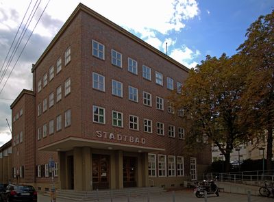 The building was completed in 1929 by architects Franz Cloos and Friedrich Fischle as Germany's largest indoor pool at that time, measuring 50 meters long. Its design in the New Objectivity style became influential for how similar swimming facilities were built in later decades.