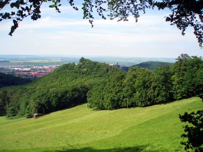 Harburg is a castle perched on a steep hill above the Wornitz River valley. The structure includes multiple towers, a ring wall, and residential buildings within the fortified complex.