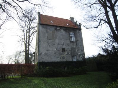 The building represents a steenhuis, a type of fortified dwelling common in East Frisia, featuring a tower design with a later two-story extension.