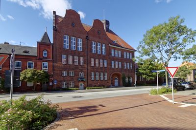 The school was founded in 1905 and relocated to its current location in 1975, where it gained recognition as a heritage monument of Schleswig-Holstein for its architectural significance. This designation reflects the building's importance to the region's architectural history.