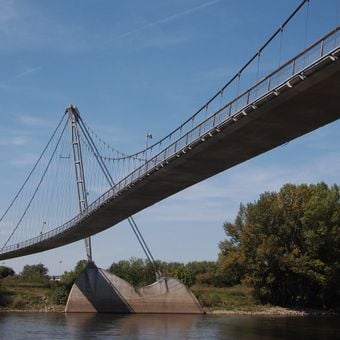 Herrenkrug pedestrian bridge, Suspension footbridge in Magdeburg, Germany.