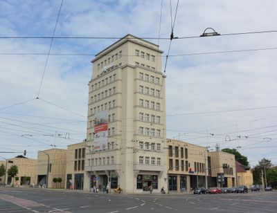The structure stands as Dresden's oldest office high-rise and remains one of the few preserved buildings from the pre-war modern architectural period.