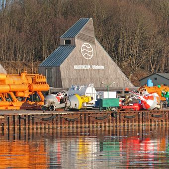 The Nautineum houses a collection of fishing equipment, marine research exhibits, and scientific specimens in multiple dedicated rooms on Dänholm Island.