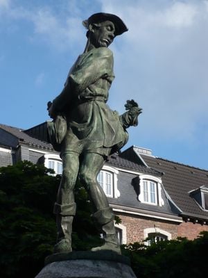 Created by sculptor Hermann Joachim Pagels, the fountain represents a humorous scene of failed theft, connecting to local market traditions in Aachen.