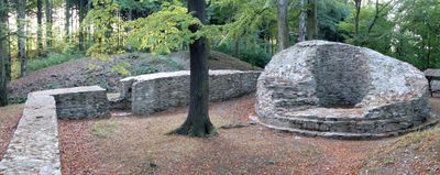 Isenburg is a castle ruin near Aue-Bad Schlema situated on a rocky outcrop above the confluence of Wildbach stream and Zwickauer Mulde river. The site displays remaining stone walls and a round tower structure.