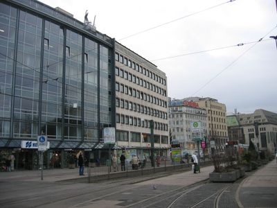 The plaza connects directly to Heinrich-Heine-Allee underground station and provides access to numerous retail establishments in the surrounding area.