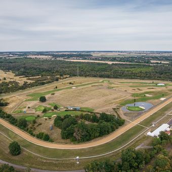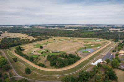The Galopprennbahn Magdeburg features a complete racing circuit with grandstands positioned along the track for optimal viewing of equestrian competitions.