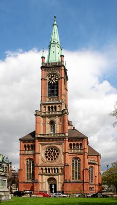 Construction began in 1875 under architects Walter Kyllmann and Adolf Heyden, creating a new religious center for the growing city. The building suffered severe damage during World War II but was restored afterward and has since remained a landmark in the urban landscape.