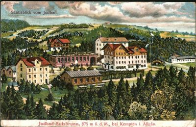 Located 20 kilometers southeast of Kempten at 875 meters altitude, Jodbad Sulzbrunn contains four iodine-magnesium springs and two mineral sulfur springs.