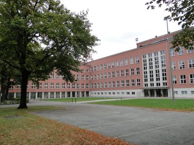 The school, established in 1929, represents architectural elements characteristic of early twentieth-century German educational institutions and carries protected monument status.