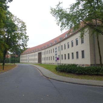 The Julius-Leber-Kaserne is a military compound in Wedding, a district in central Berlin. The installation consists of more than a hundred buildings arranged around a central axis with an oval ring road.