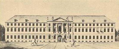 The Prussian cadet house features a Doric portal entrance with a balcony and a Minerva bust above the main door entrance.