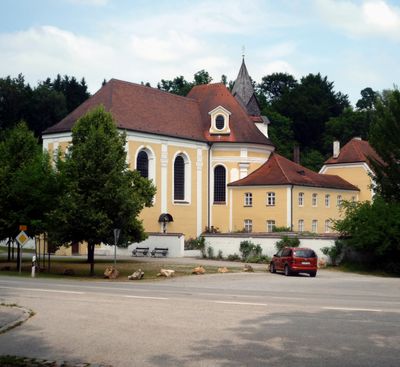 The church contains numerous works from the Wessobrunner School, including detailed stucco decorations and ceiling paintings depicting religious scenes.