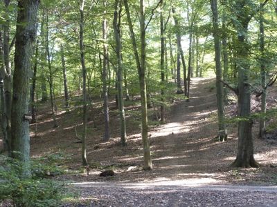 The Kelsterbacher Terrace extends for eight kilometers through the Frankfurt forest, rising to a height of 17 meters above the surrounding landscape point.